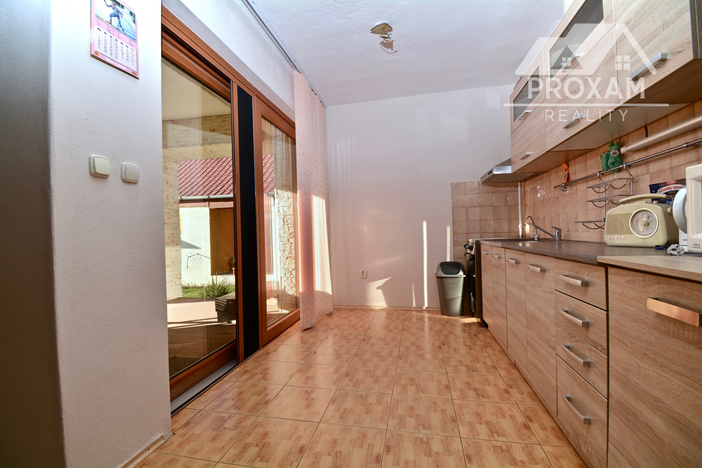 Pri dome sa nachádza letná kuchynka, priestranná dvojgaráž a prístrešok.