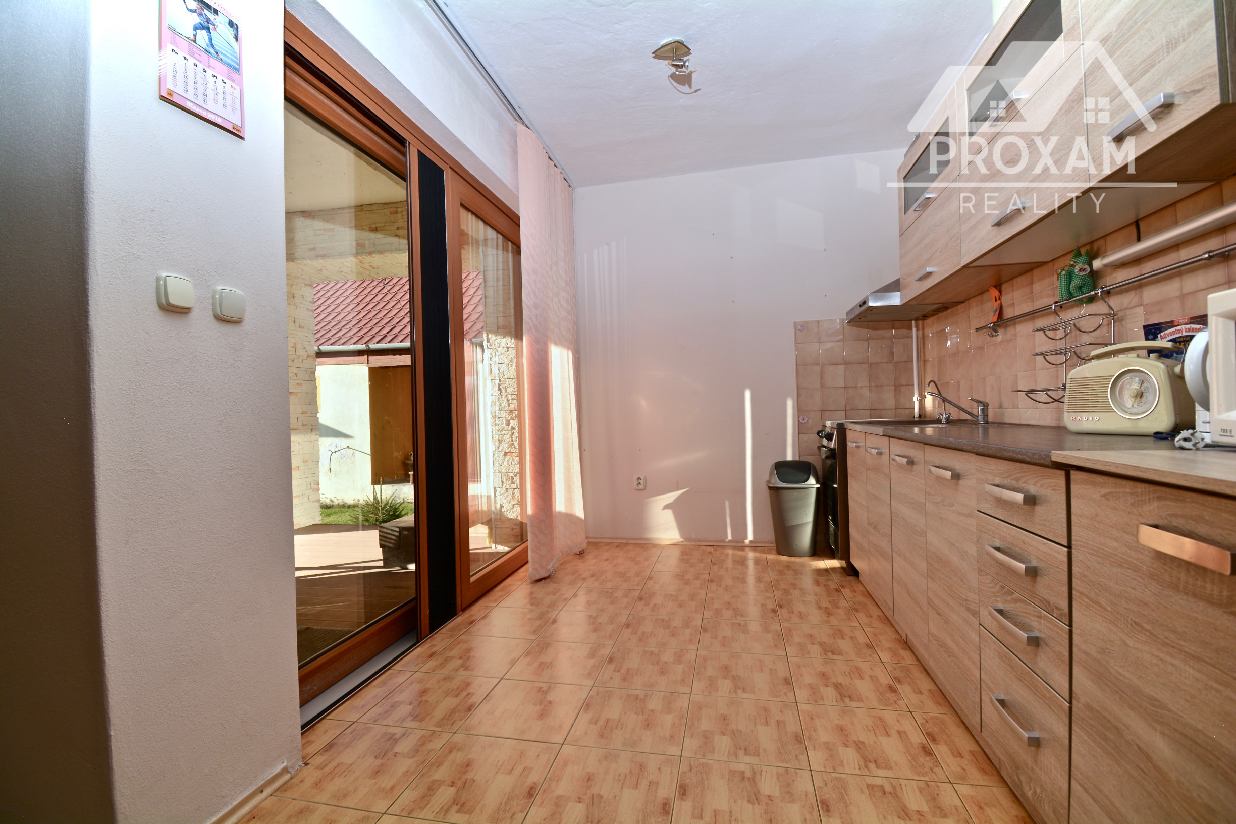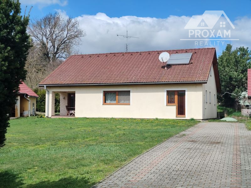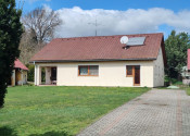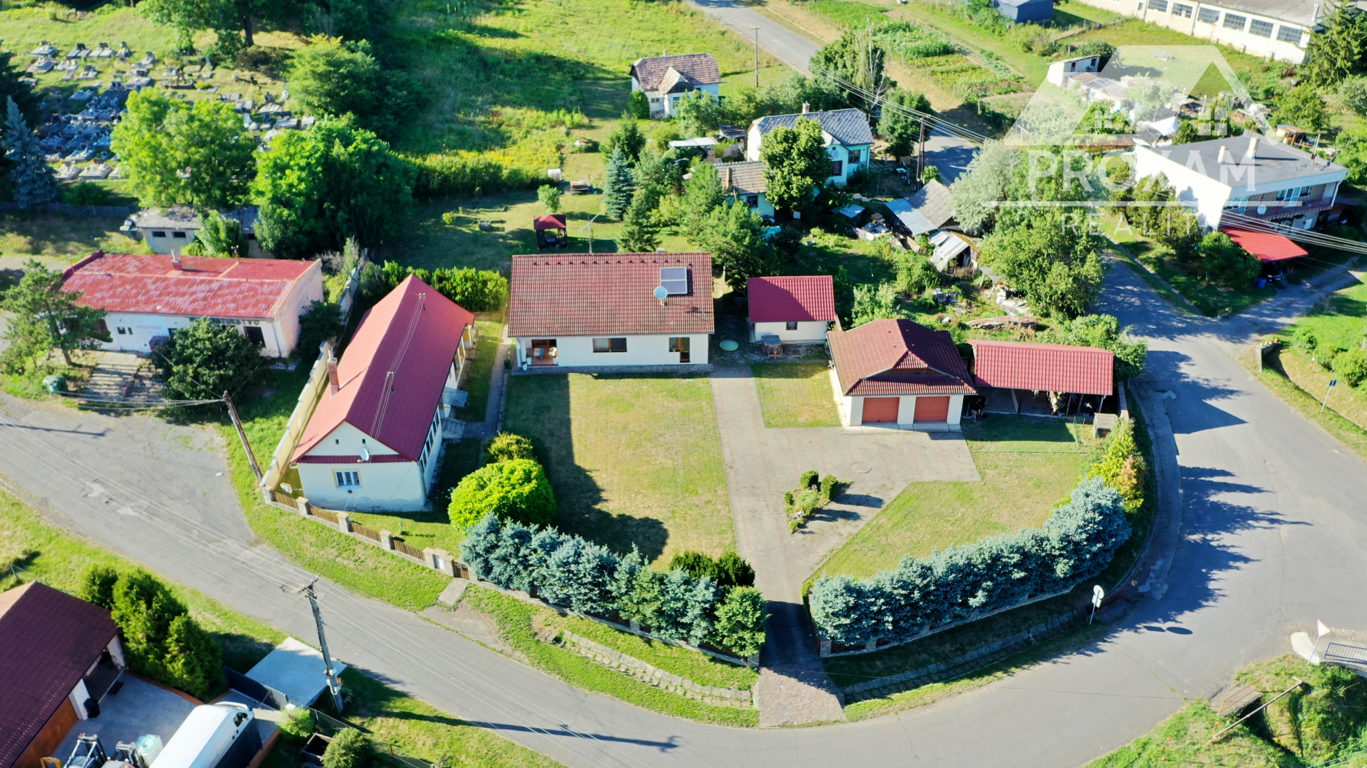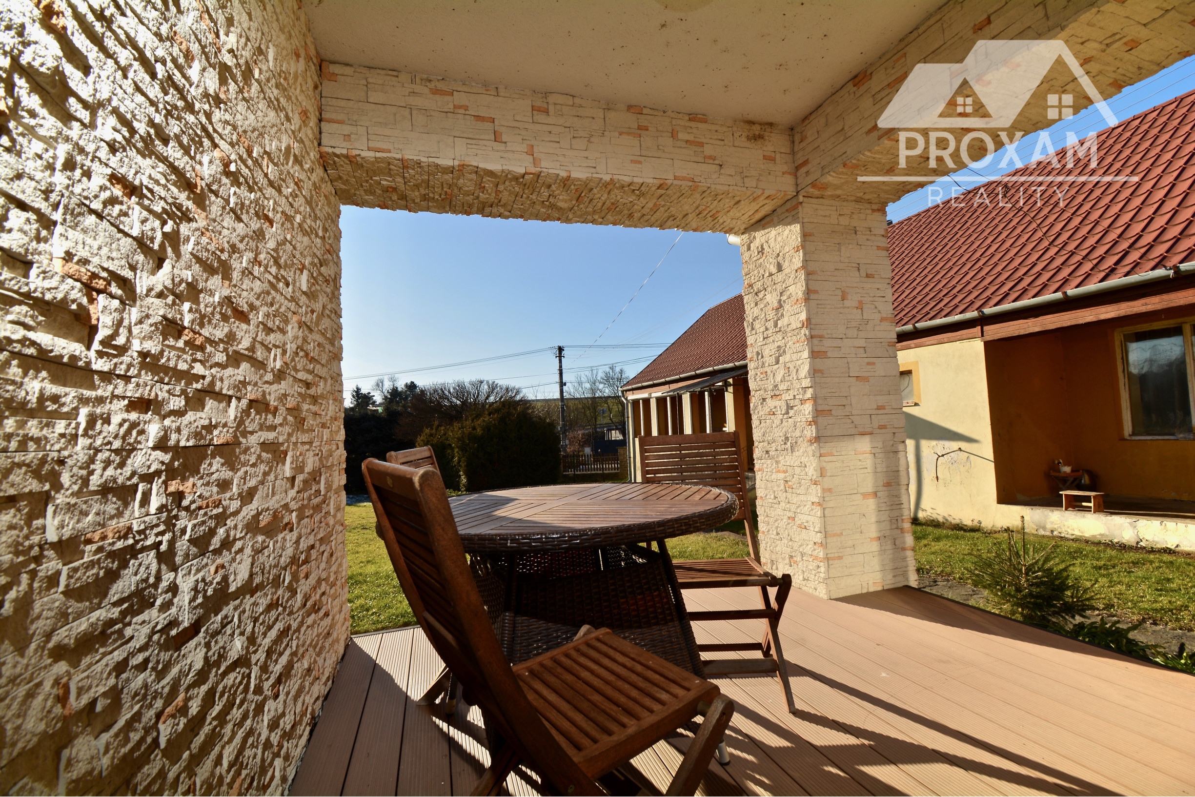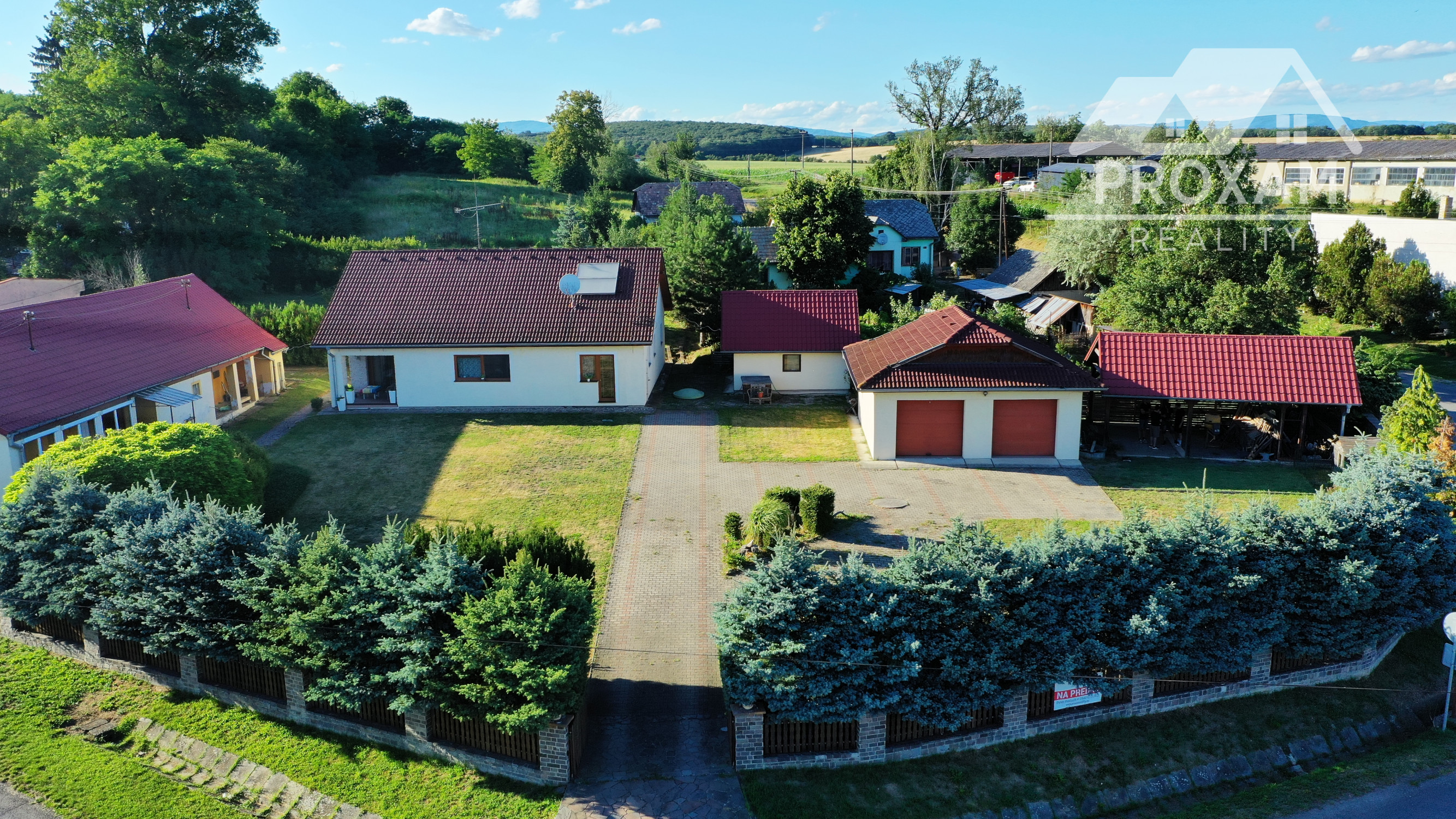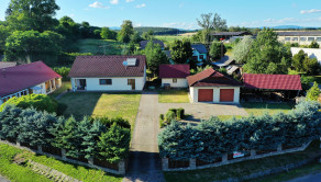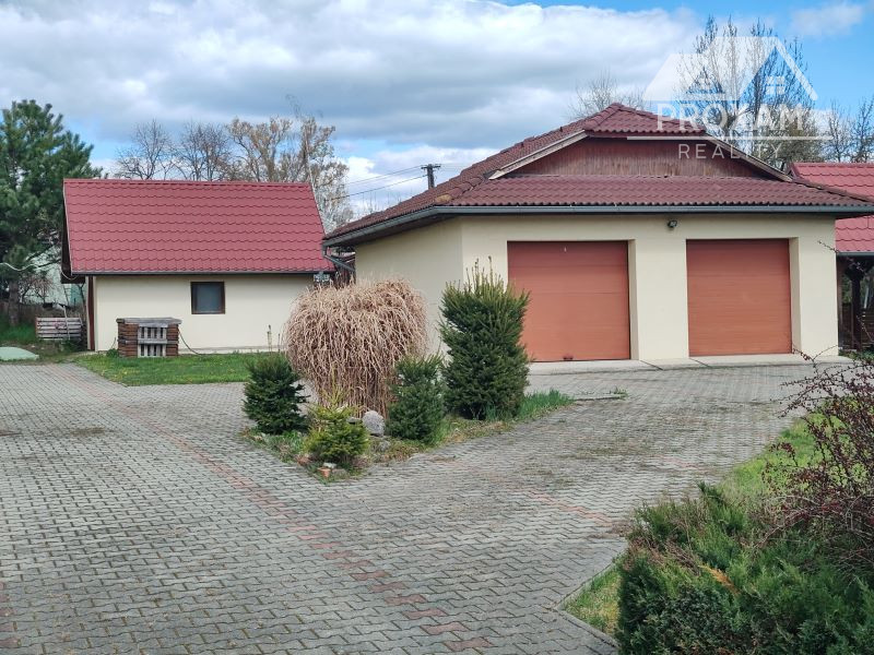 Pri dome sa nachádza letná kuchynka, priestranná dvojgaráž a prístrešok.