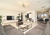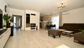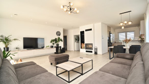Priestranná denná časť: nadčasová kuchyňa prepojená s obývacou izbou (57,55m2) s výstupom na terasu
