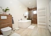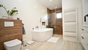 •Priestranná kúpeľňa s vaňou, sprchovým kútom, umývadlom a WC