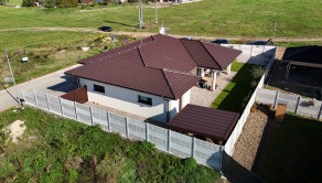 Dom je moderne navrhnutý s dôrazom na dostatok denného svetla a praktické oddelenie dennej a nočnej časti.
