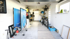 Súčasťou nehnuteľnosti je: veľká technická miestnosť. Vykurovaná garáž s elektrickým ovládaním. Možnosť parkovať pred garážou, popri dome za sebou. Drevený prístrešok. Úložný priestor v podkroví domu, prístupný sklápacím schodiskom.