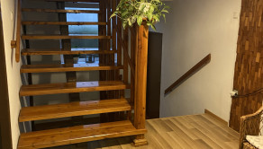 Na medzipodlaží vás prekvapí priestranná kúpeľňa (vaňa, sprcha, 2 umývadlá, vstavaná skriňa) a jedna z troch spální. Hore nájdete ďalšie dve veľké izby, WC a úložný povalový priestor.
