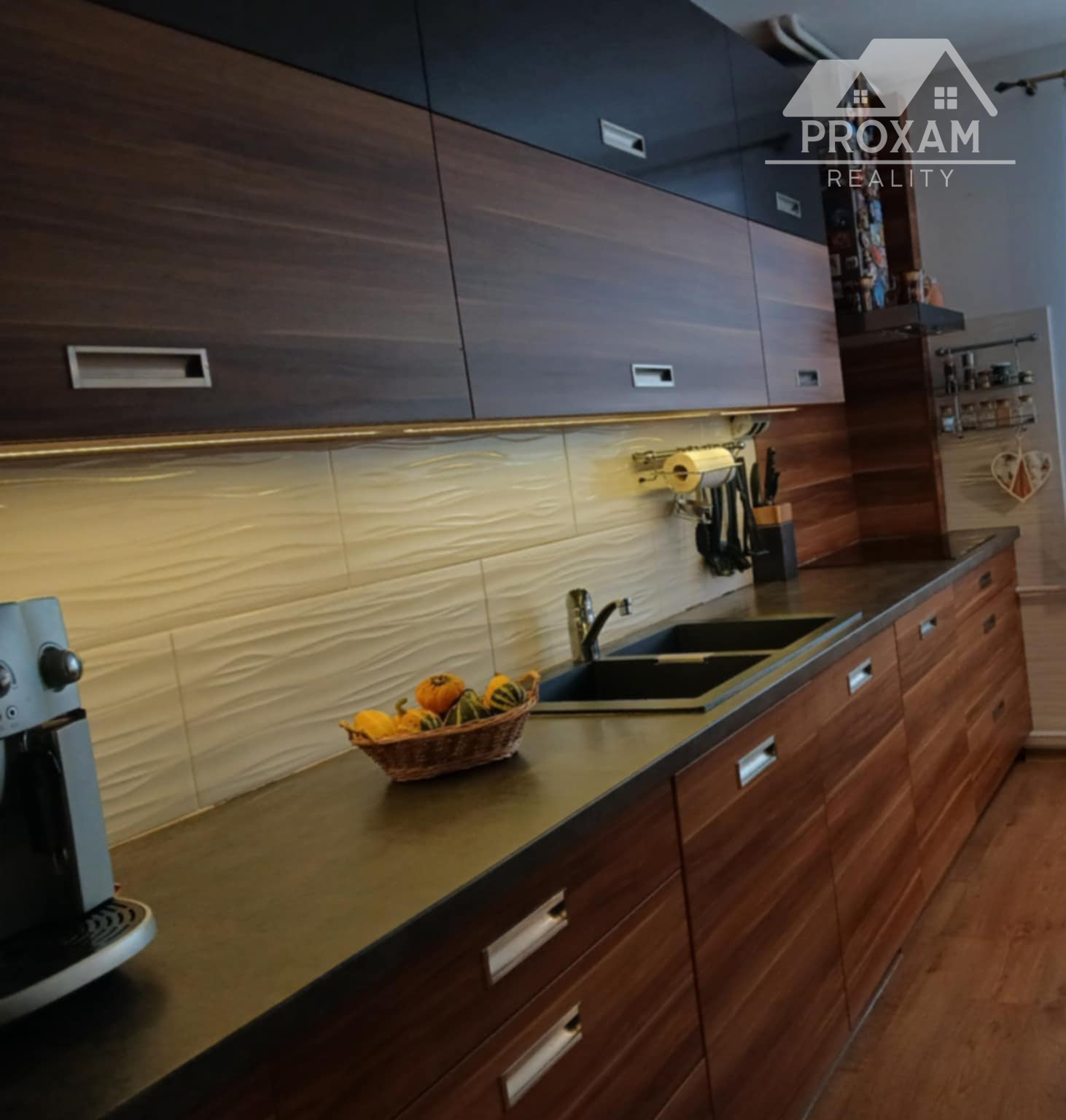 Denná časť na prízemí pozostáva z garáže, vstupnej chodby, samostatného WC a veľkej obývacej izby prepojenej s jedálňou a kuchyňou vyrobenou na mieru so vstavanými spotrebičmi.