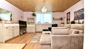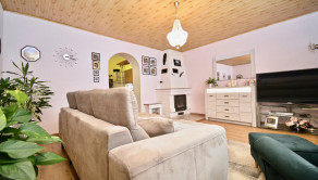 Priestor poskytuje vysoký štandard bývania aj potenciál pre komerčné využitie. Vstupná chodba, otvorený koncept kuchyne prepojenej s obývacou izbou, vytvárajúci svetlý priestor, dve nepriechodné izby s veľkorysými loggiami, ponúkajúce výhľad do upravenej záhrady a ideálne miesto na rannú kávu a večerné posedenie. Samostatná miestnosť aktuálne využívaná ako kaderníctvo, s praktickým prístupom z ulice aj z dvora. Presvetlená kúpeľňa, dve toalety s umývadlami a veľká komora. Dom je čiastočne podpivničený, priestor sa využíva ako technická miestnosť a úložný priestor. K domu je pristavená priestranná murovaná garáž.