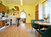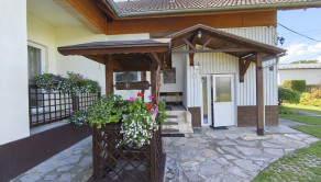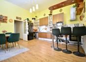 Priestor poskytuje vysoký štandard bývania aj potenciál pre komerčné využitie. Vstupná chodba, otvorený koncept kuchyne prepojenej s obývacou izbou, vytvárajúci svetlý priestor, dve nepriechodné izby s veľkorysými loggiami, ponúkajúce výhľad do upravenej záhrady a ideálne miesto na rannú kávu a večerné posedenie. Samostatná miestnosť aktuálne využívaná ako kaderníctvo, s praktickým prístupom z ulice aj z dvora. Presvetlená kúpeľňa, dve toalety s umývadlami a veľká komora. Dom je čiastočne podpivničený, priestor sa využíva ako technická miestnosť a úložný priestor. K domu je pristavená priestranná murovaná garáž.