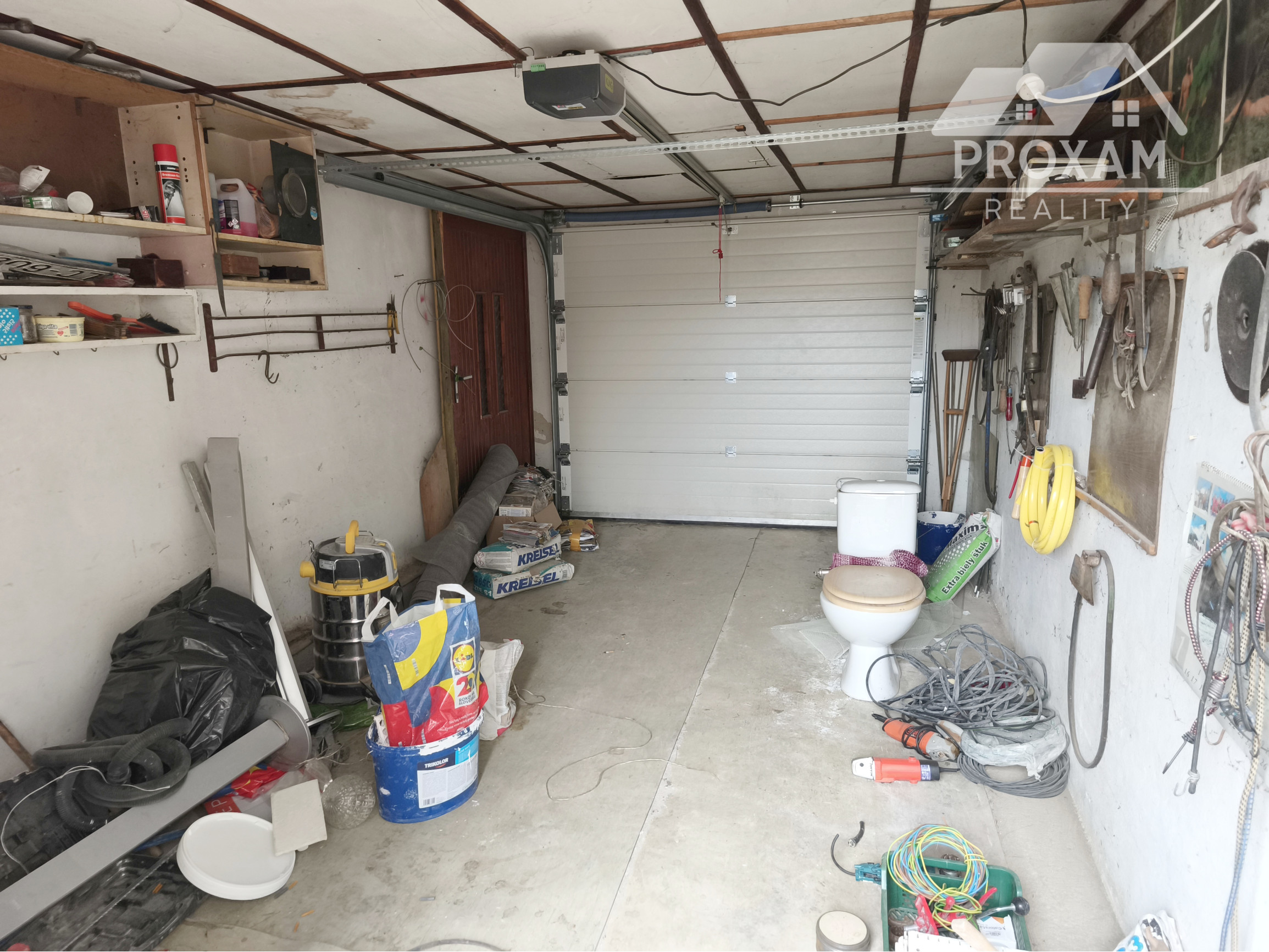 Murovaná garáž 19 m2: bola postavená v r. 1985 s plochou strechou, podlaha betónová, elektroinštalácia. Vjazd do garáže je priamo z ulice, je možný aj prejazd do dvora.